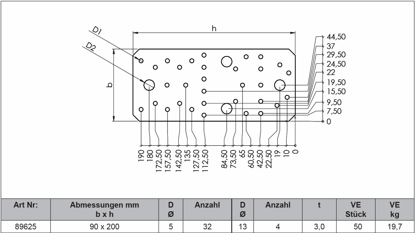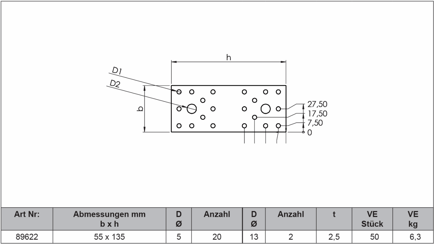 Flachverbinder werden mit Kammnägeln 4 x L oder mit Schrauben befestigt. Wir empfehlen, immer zwei Flachverbinder pro Verbindung zu verwenden. Nähere Einzelheiten können Sie der DIN 1052:2004-08 entnehmen.