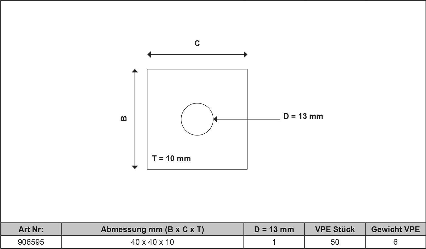 Produktinformationen "DAKL U-Scheibe für Betonflachstahlanker 40x40x10"