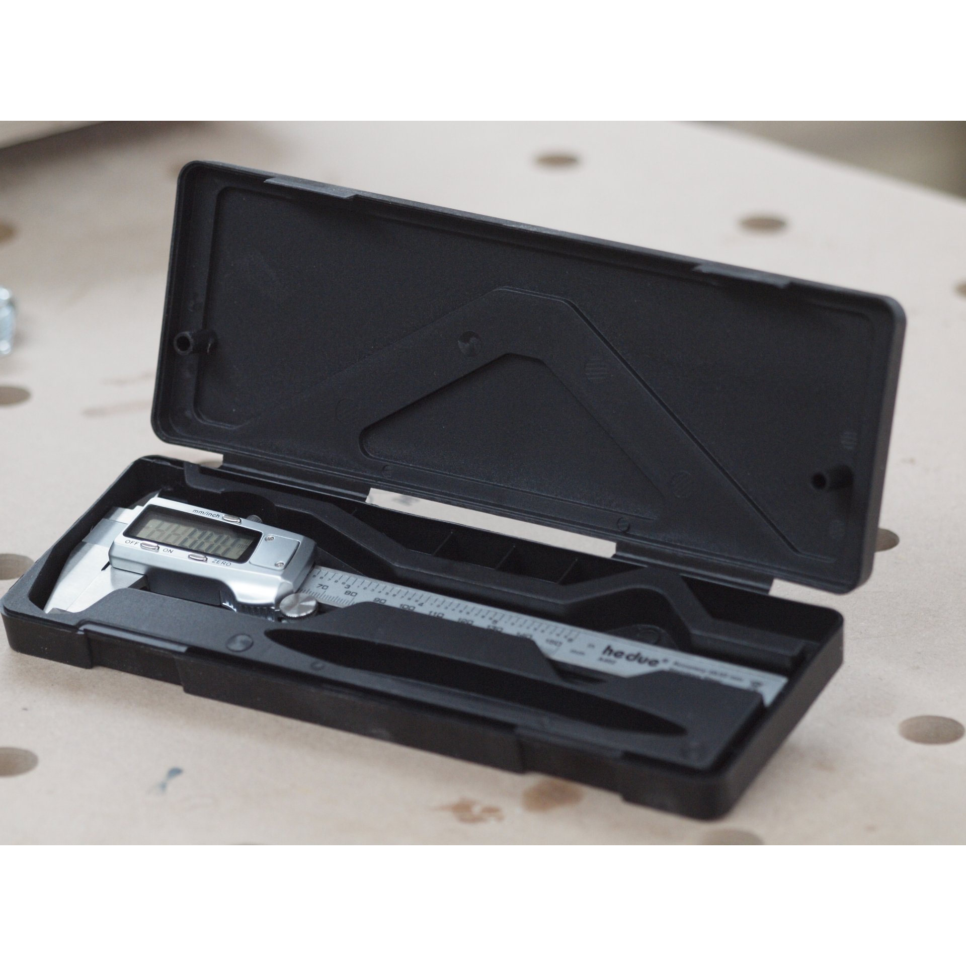 Der Messschieber verfügt über eine Gehäuseabdeckung und Daumenrolle aus Metall. Die Messschiene ist aus Edelstahl rostfrei hergestellt.