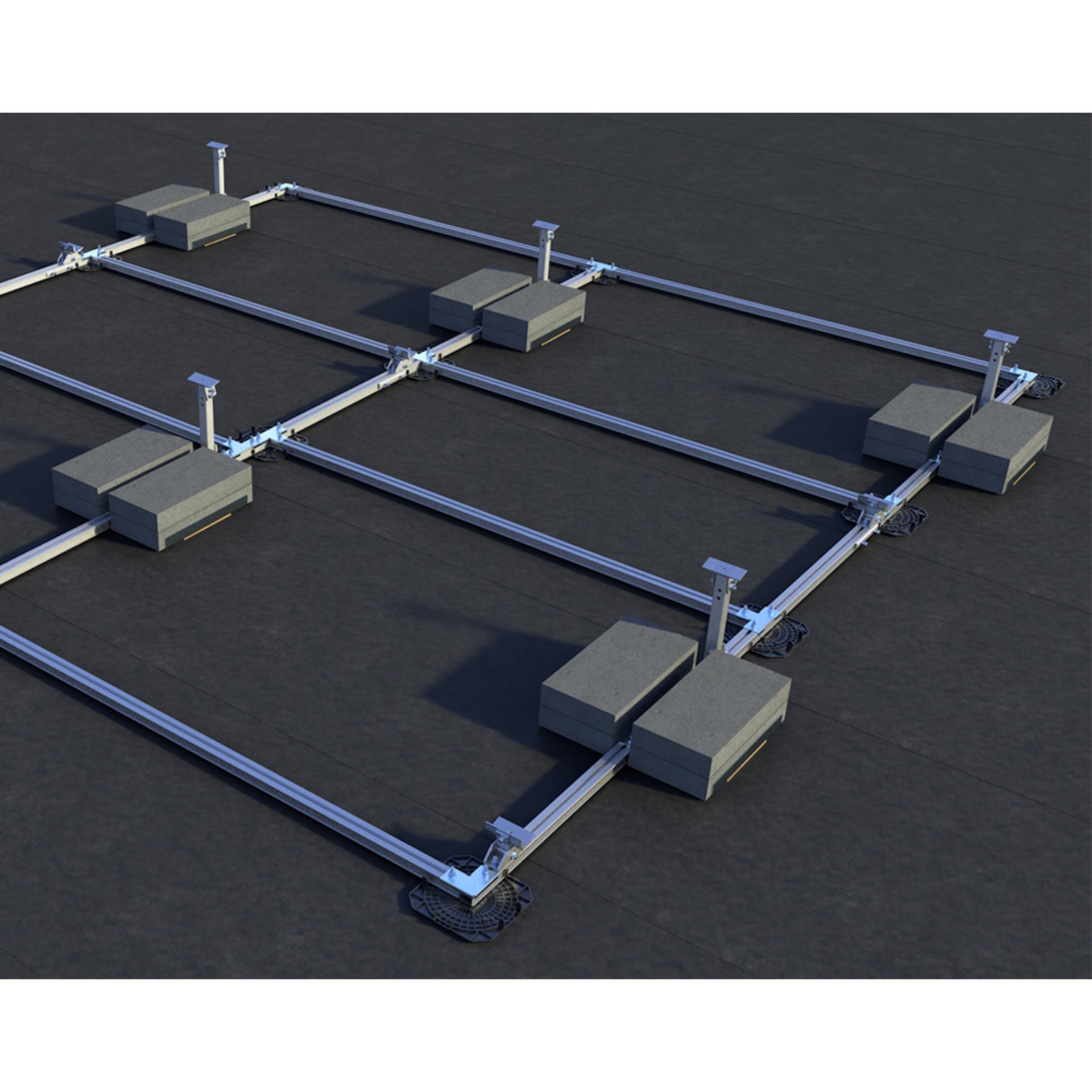 Um die Konstruktion sicher auf dem Dach halten zu können, werden die Balastwannen montiert und mit Steinen bestückt.