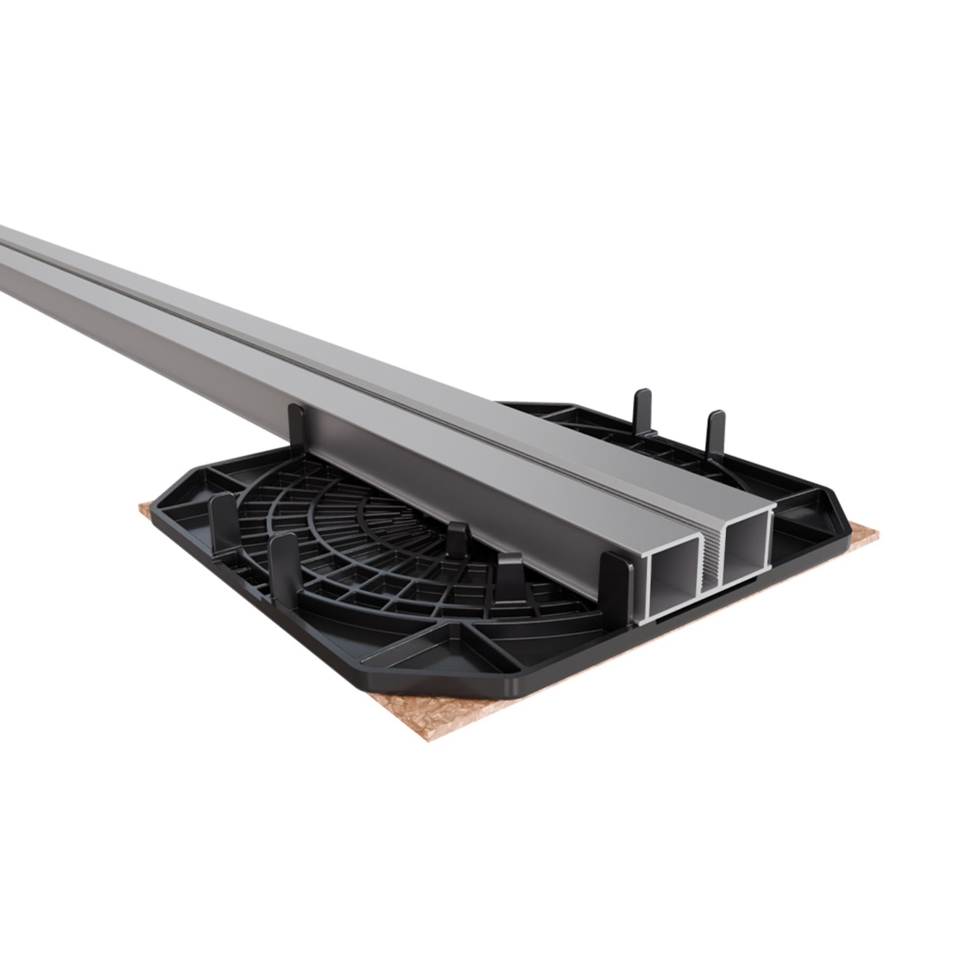 Das FLD-Montageprofil dient zur Montage von Solarpaneelen in Kombination mit dem FLD-Flachdachsystem. Durch den Schraubkanal im Profil können alle weiteren Komponenten des Systems einfach und flexibel mit TX 40 Schrauben angebracht werden. Die breite Auflagefläche des Montageprofils sorgt für hohe Stabilität, sodass in Kombination mit den Ballastprofilen keine zusätzliche Queraussteifung mehr benötigt wird. Dadurch wird wertvolle Arbeitszeit und Aufwand eingespart.