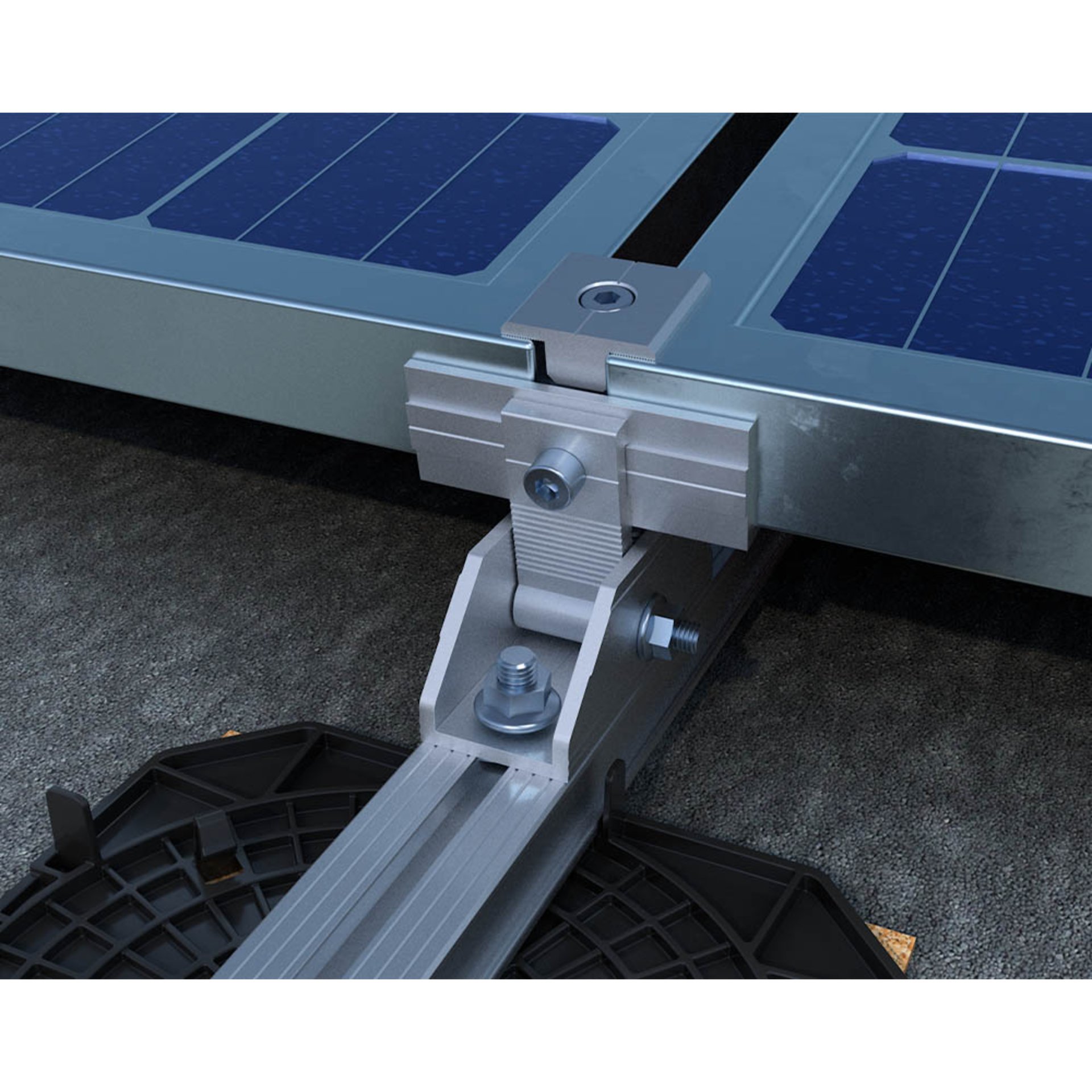 Auf dem Gelenk für Modulaufständerung vorne können die Solarpaneele individuell auf dem Montageprofil befestigt werden.