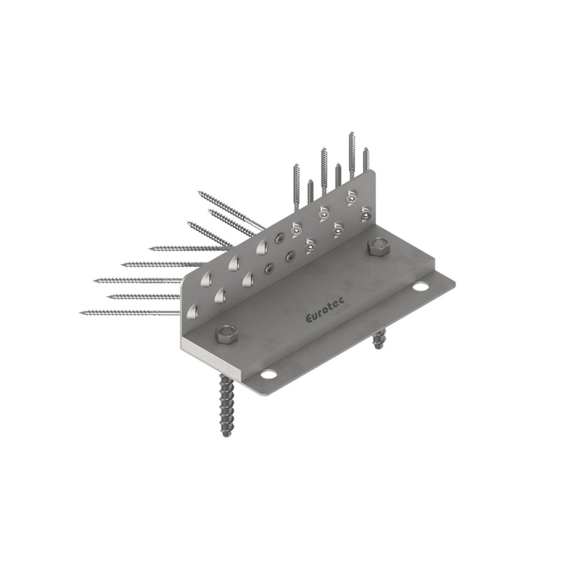 Scherkräfte können mit dem Eurotec Scherwinkel HB flach gezielt aufgenommen werden. Sie können das Produkt speziell im Holzrahmenbau anwenden. Durch das Anbringen einer Druckplatte können auftretende Lasten in den Beton geleitet werden.