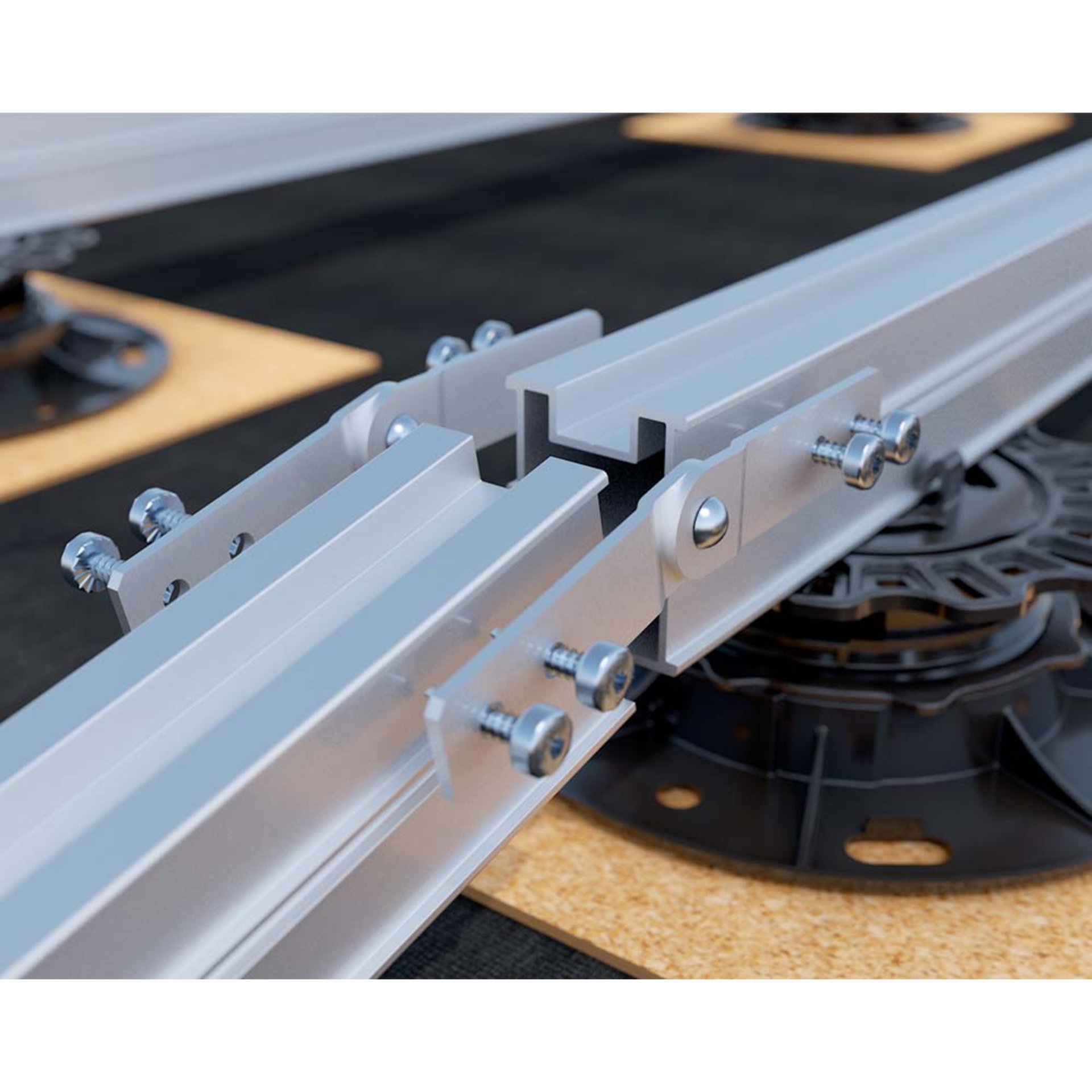 Mithilfe der TERRA Gelenke werden die TERRA Alu-Systemprofile optimal miteinander verbunden. Da die Gelenke einseitig frei drehbar sind, können diese individuell an der Profilschiene positioniert werden. Bei dem Bau von Terrassenunterkonstruktionen eignen sich die TERRA Gelenke für Winkel von bis zu 90° bzw. 180°. Der Scharnierverbinder EVO kommt zum Einsatz, um Profile in horizontaler Richtung auszurichten, sodass z. B. Terrassenrundungen hergestellt werden können.