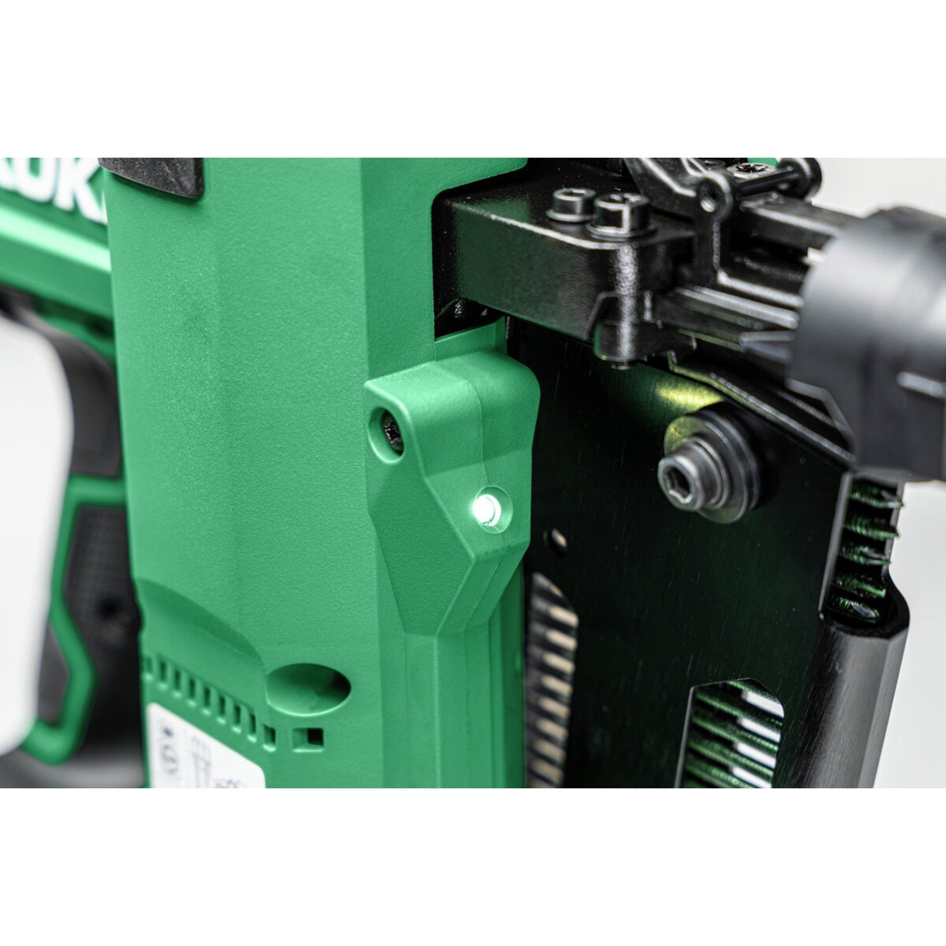 • HiKOKI Luftfeder-Antriebssystem für gaslosen, emissionsfreien Betrieb mit stabiler Leistung und angenehmen pneumatikähnlichen Verhalten, ohne die Unannehmlichkeiten und Risiken von Schläuchen oder Kompressoren