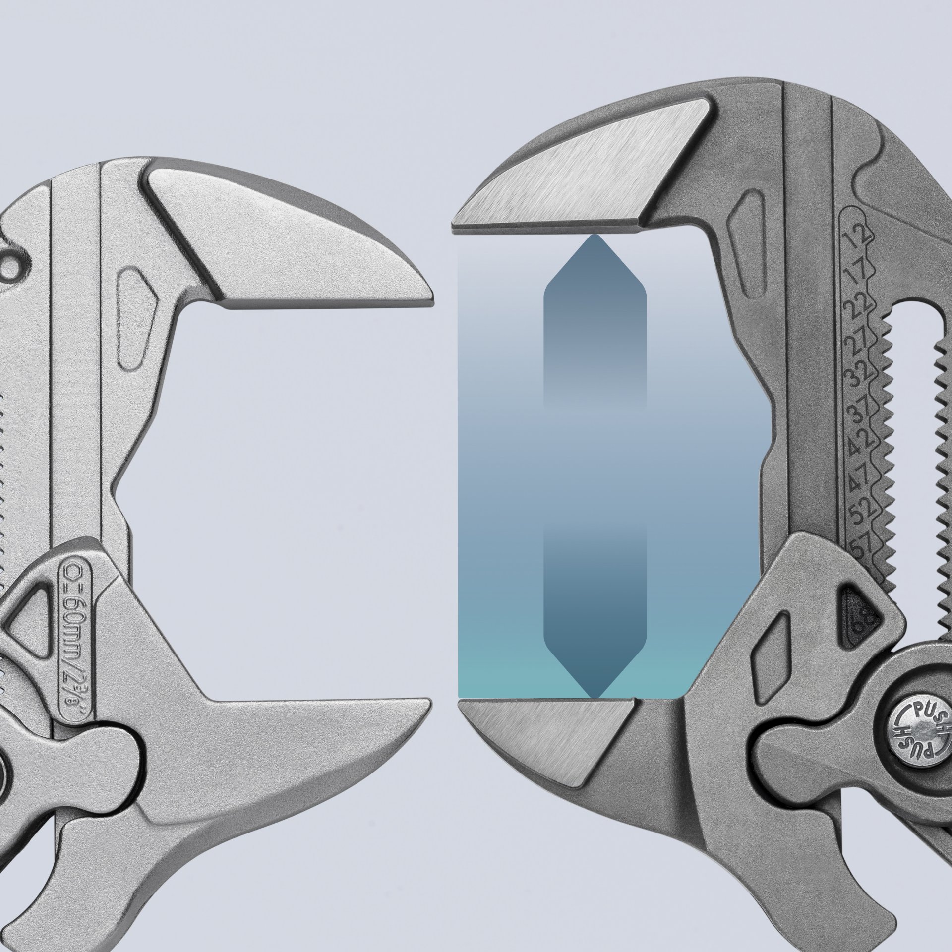 Eigenschaften "KNIPEX 86 01 300 Zangenschlüssel Zange und Schraubenschlüssel in einem Werkzeug mit rutschhemmendem Kunststoff überzogen grau atramentiert 300 mm"