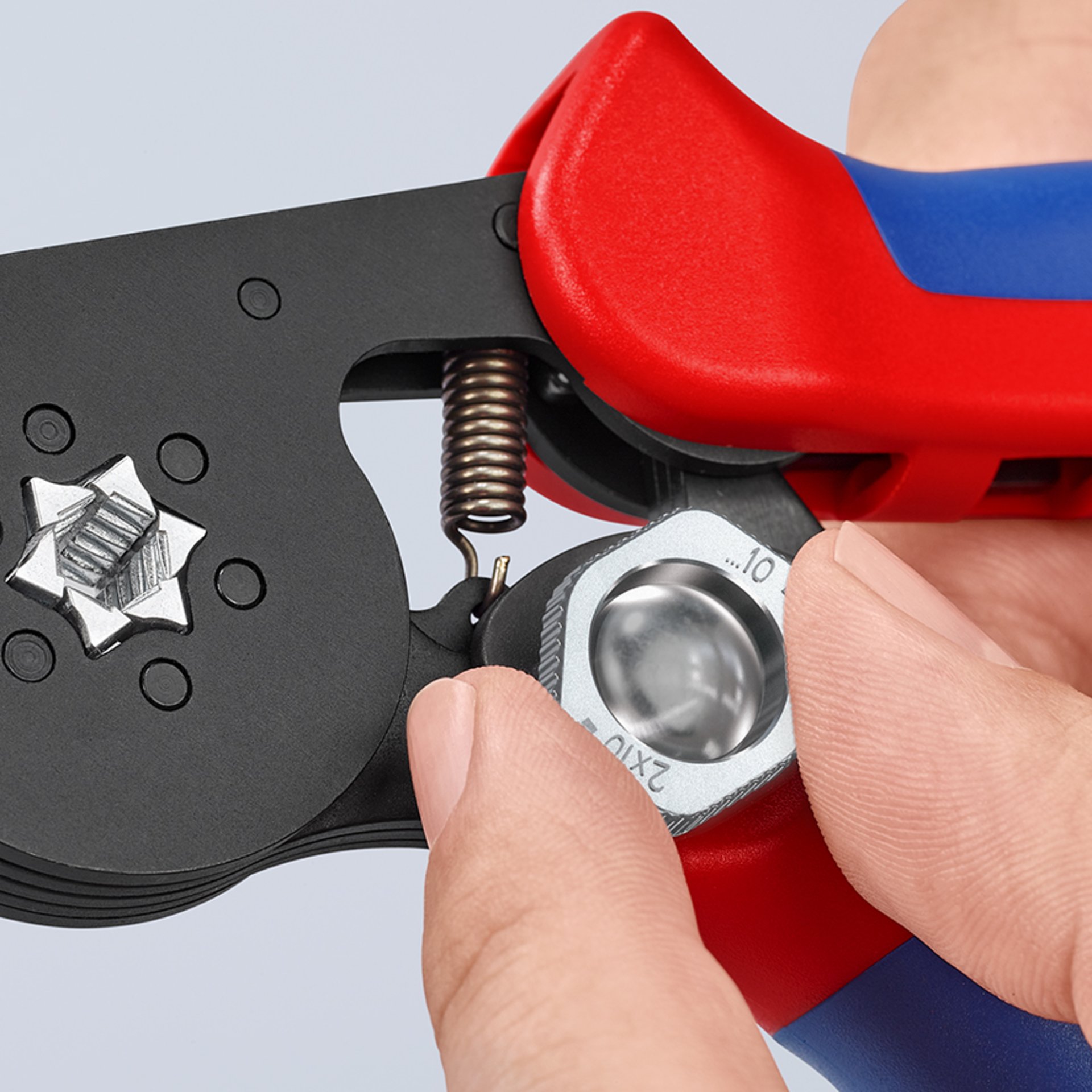 Eigenschaften "KNIPEX 97 53 14 SB Selbsteinstellende Crimpzange für Aderendhülsen mit Seiteneinführung mit Mehrkomponenten-Hüllen brüniert 180 mm"