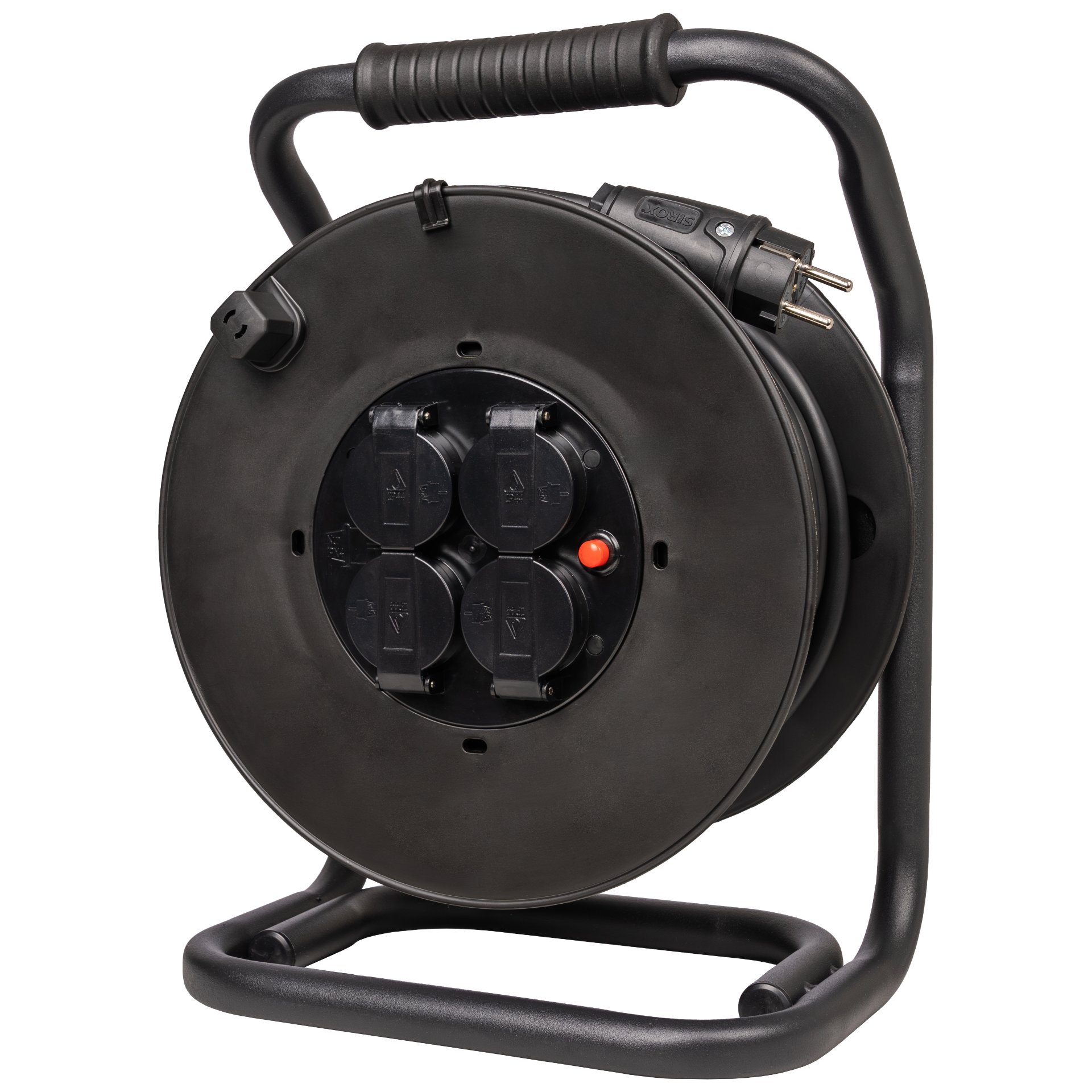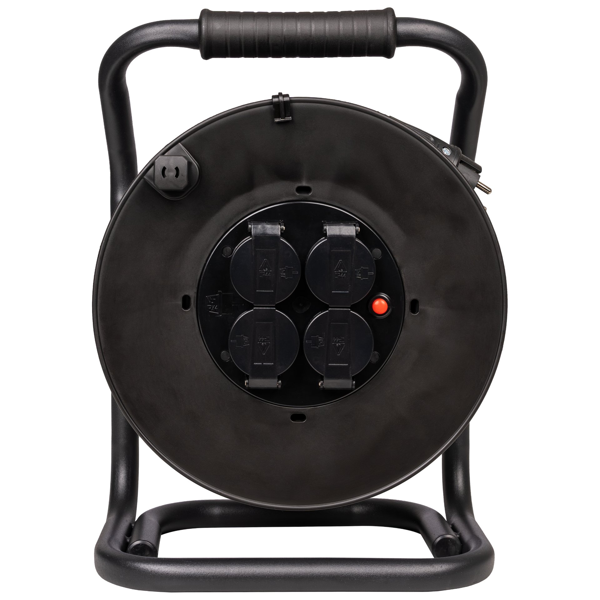 Produktinformationen "Kabeltrommel, schwarz, 25 m, 4x Schutzkontakt-Steckdose, H07RN-F 3G2,5 mm², mit Klappdeckel, Germany Base-Line 2.0, Target"