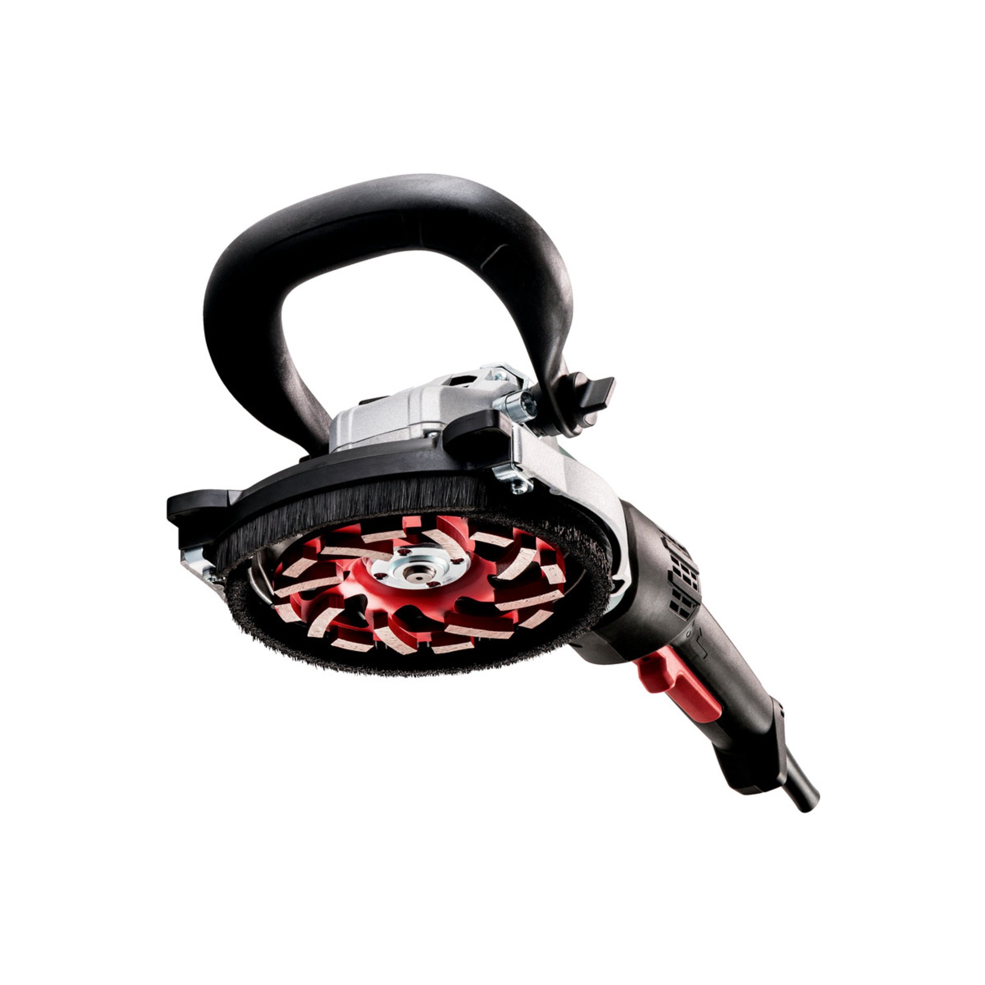 Optimale Absaugergebnisse: gefederter Bürstenkranz an der Schutzhaube, der sich an jede Oberfläche und Segmenthöhe anpasst