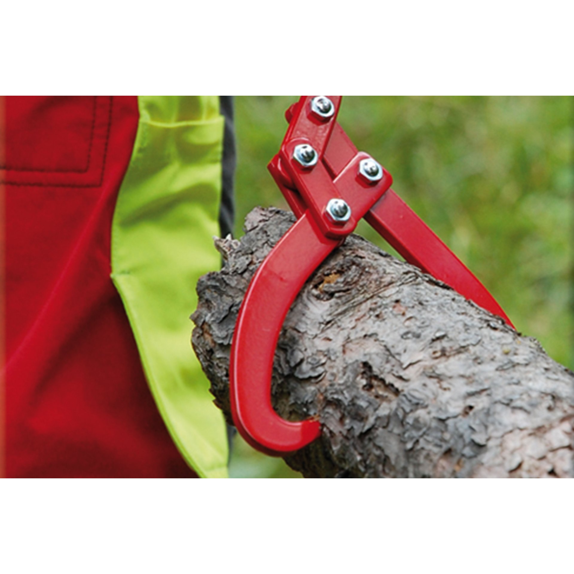 Verdrehter Griff 90°. Zange aus Qualitätsstahl, vergütet, pulverbeschichtet, Gelenke in nachstellbarer, geschraubter Ausführung. Rutschfester, handfreundlicher Kunststoffgriff, für Stammdurchmesser bis 180 mm.