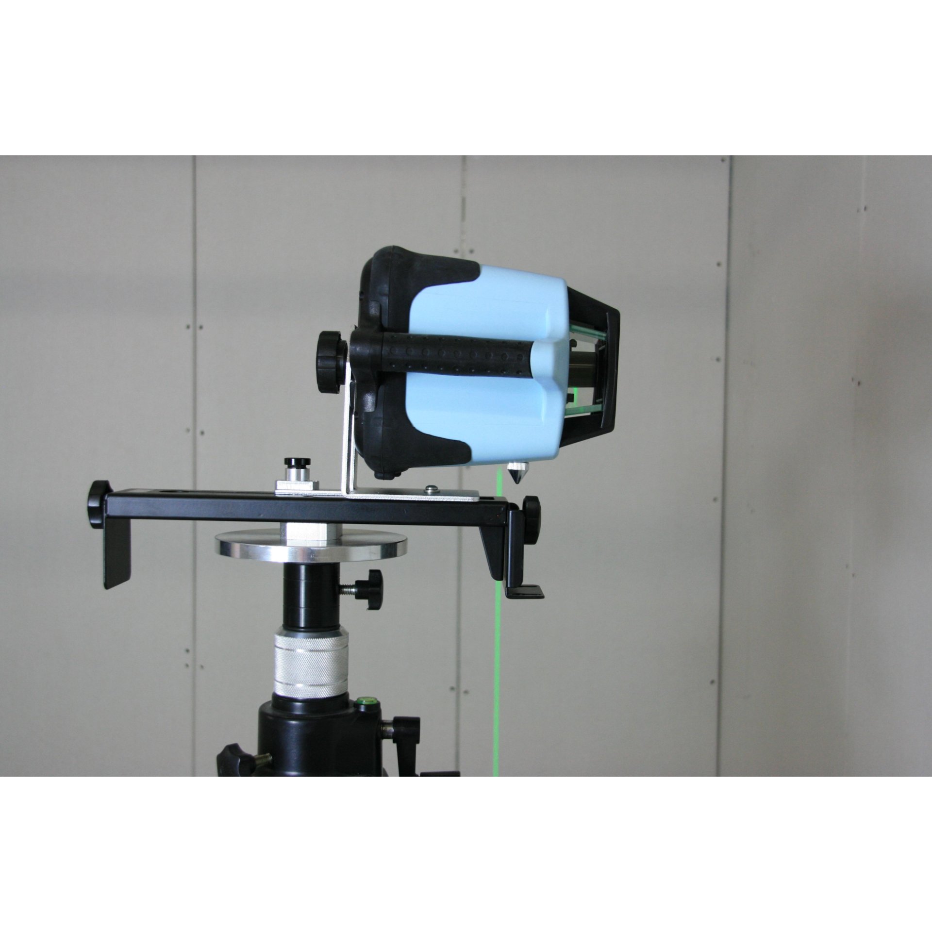 Die Wandhalterung ist dank des 5/8"Gewindes für Rotationslaser und Linienlaser geeignet und auf Knopfdruck stufenlos höhenverstellbar. Die auf den Millimeter genaue Positionierung des Laserstrahls wird über eine Stellschraube erreicht. Dank flacher Bauweise der Rückseite ist die Kombination mit allen gängigen Baustativen möglich, egal ob kleiner oder großer Stativteller. Auf ebenen Untergründen kann die Halterung zudem als Bodenstativ genutzt werden.