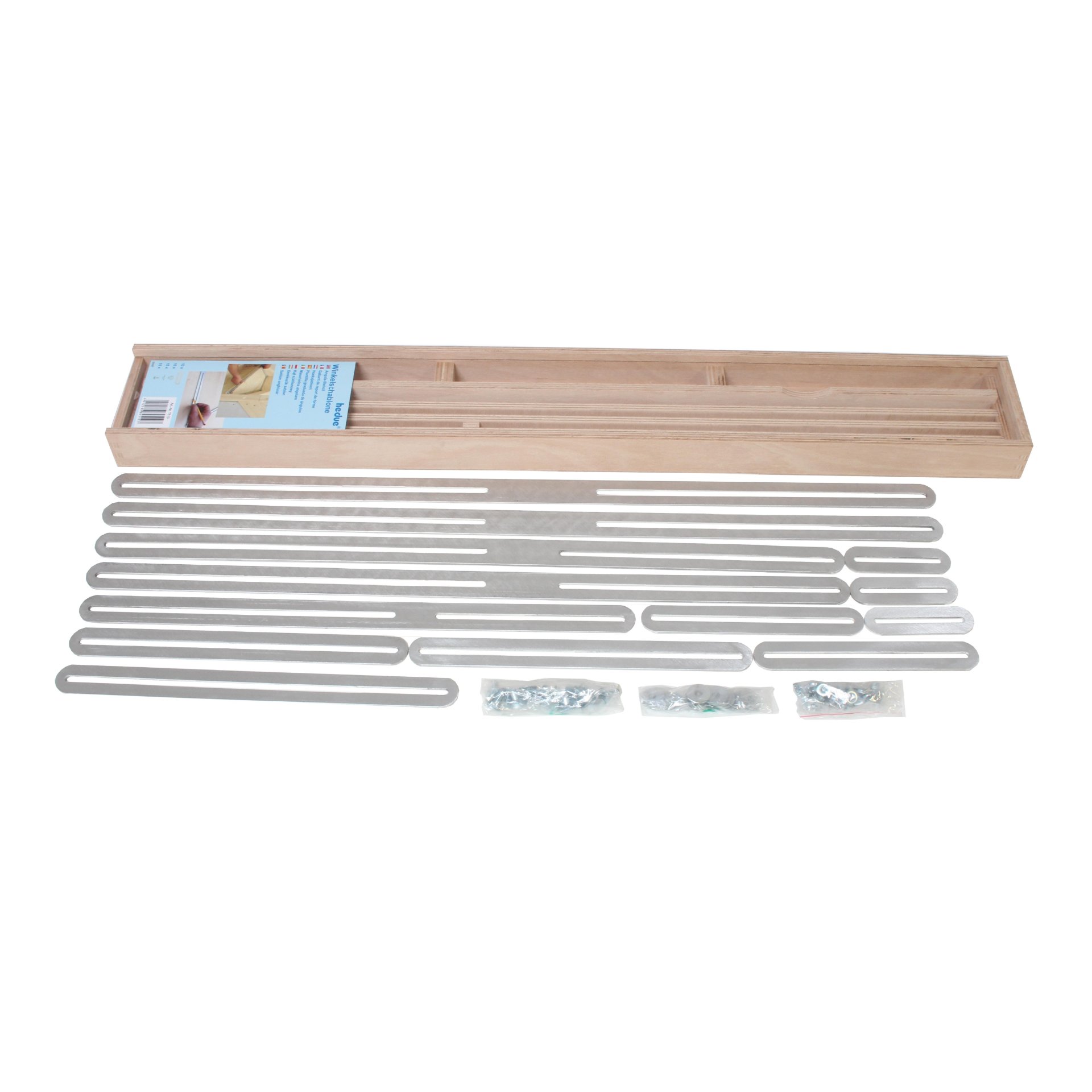 Die Winkelschablone eignet sich für das Übertragen von vieleckigen Konturen auf Werkstücke. Die Arbeit mit der Winkelschablone ist dabei einfacher als das Ausmessen mit dem Maßband oder Meterstab und präziser als das Erstellen einer Papierschablone. Durch das Verbinden verschiedener Aluminiumschienen lassen sich beliebige Geraden erstellen. Durch das Überlappen der Schienen können Zwischenmaße nach individuellem Bedarf angepasst werden.